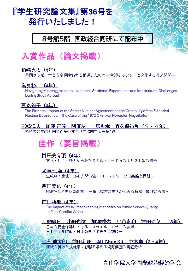 2025『学生研究論文集』 第36号が発行されました